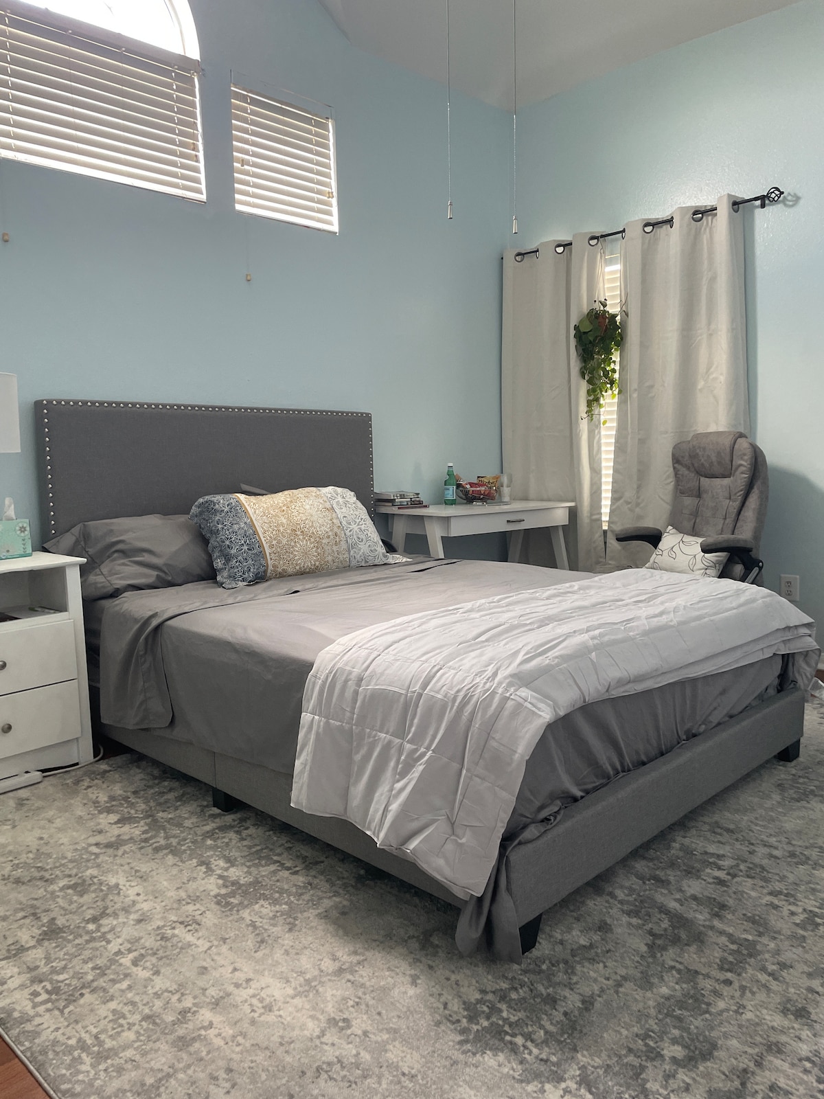 Este espacio es completamente privado. No compartes ninguna zona común. La habitación A (12x14) incluye su propia cama, baño privado, nevera, microondas, tiene una entrada privada y una plaza de aparcamiento privado. Este rincón se encuentra en la parte trasera de mi casa. No se conecta a la casa principal. «La cama ocupa una parte importante de la habitación, por lo que el espacio entre los pasillos se reduce. Tenga en cuenta que el área es limitada y le recomendamos precaución al desplazarse