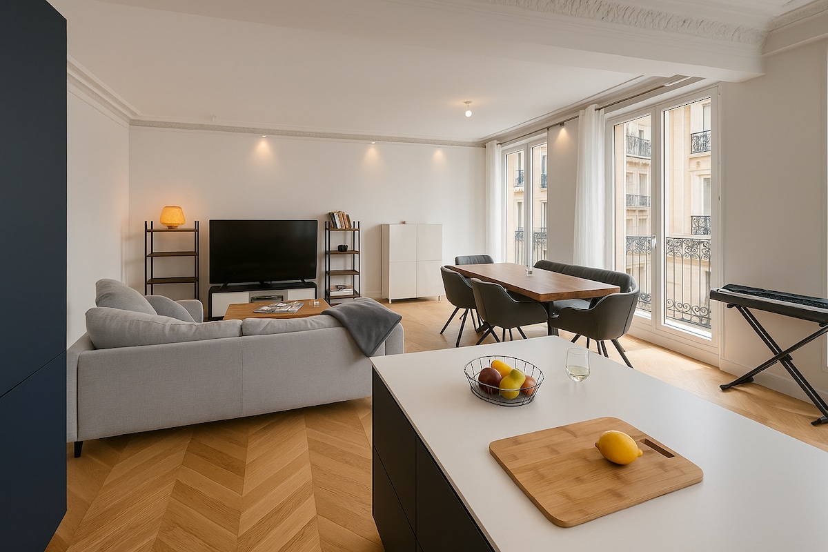 Apartamento de lujo renovado en París 17, entre Monceau y Batignolles. Luminoso, tranquilo y elegante, con techos altos, parqué en espiga y acabados de calidad. • Cama tamaño queen + sofá cama • Cocina totalmente equipada con barra de mármol • Ducha italiana a ras del suelo Una auténtica sensación de hotel boutique en una zona muy solicitada. Perfecto para parejas, familias o estancias de negocios. Wifi rápido y Smart TV incluidos.