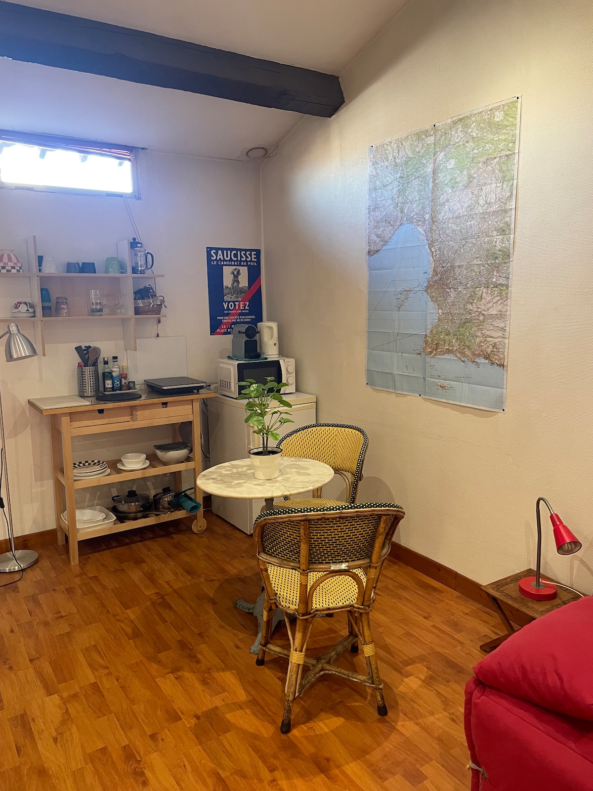 Bonita T1 de 30m2 + 15m2 de altillo. El encanto de lo antiguo reformado, en pleno corazón del barrio de Camas, un ambiente a la vez animado y familiar. Muy céntrico y todo lo necesario al lado: restaurantes, bares, tiendas, lavandería, panadería. Tranvía a 20 metros y acceso directo al barrio de Noailles por encima del Puerto Viejo y a la estación de tren de la Blancarde. Zona de noche con cama doble en el altillo. Cocina independiente equipada, horno, microondas, hervidor de agua, cafetera