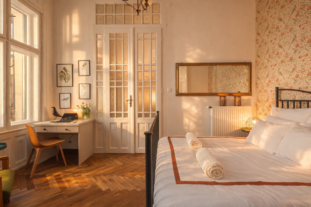 Despiértate con una de las vistas más emblemáticas de Europa: el Parlamento húngaro, justo fuera de tu ventana. Este apartamento de diseño de 100 metros cuadrados combina elegancia y comodidad en el corazón de Budapest. Cafés, museos, el Danubio y todo el transporte público están a solo unos pasos. Ideal para parejas, familias y trabajadores remotos que buscan un refugio tranquilo con vistas inolvidables.