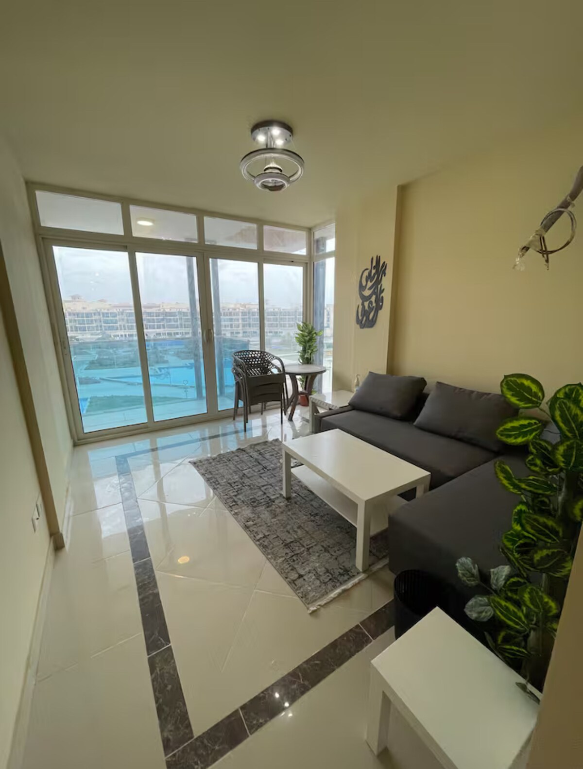 Disfruta de tu estancia en un apartamento de lujo totalmente amueblado con vistas directas a la fuente danzante más grande y una piscina privada en una ubicación privilegiada en el complejo cerca del centro comercial de Arabia y Dahshur, también a 18 minutos de la plaza Arkan de la ciudad de Sheikh Zayed, a 20 minutos del aeropuerto de Sphinx. Todos los servicios están disponibles alrededor del complejo. El apartamento cuenta con aparcamiento gratuito en el lugar y todos los muebles son nuevos, lo que hace que tu escapada sea muy cómoda y relajante. Servicios de vigilancia y seguridad las 24 horas.