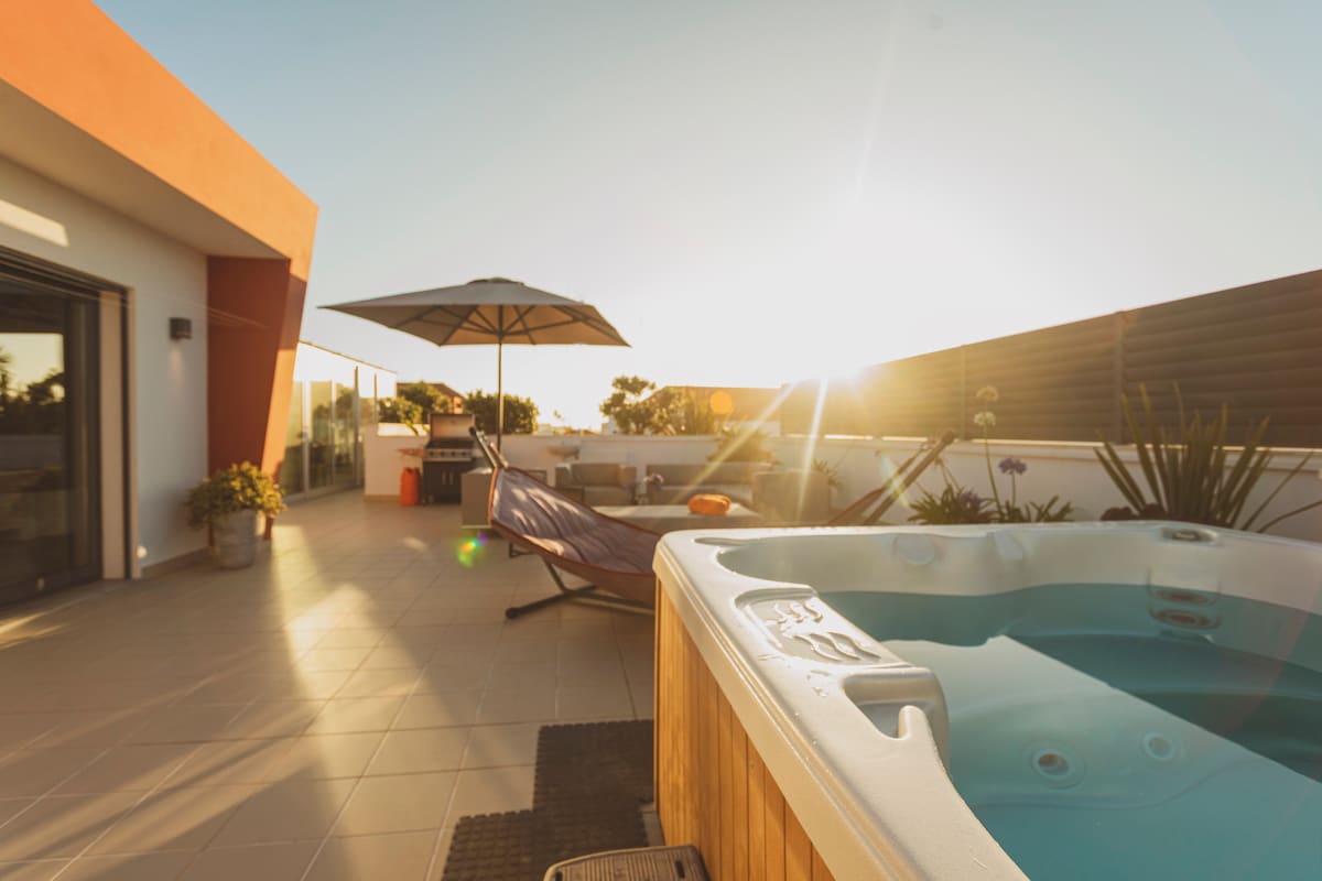 Esta lujosa casa de diseño (A) se encuentra en Martim Joanes (Costa de Plata), a unos 50 minutos del aeropuerto de Lisboa, en una colina tranquila (a 5 minutos en coche del centro de Cadaval). En la región hay varias vistas hermosas, hermosa naturaleza, paraíso del surf, playas, buenos restaurantes, ... La cama individual A tiene 2 dormitorios, 1 cocina, 1 baño y 1 sala de estar. Así que está disponible para 4 personas. La piscina es para compartir con la otra casa gemela B. Piscina climatizada de mayo a finales de octubre.