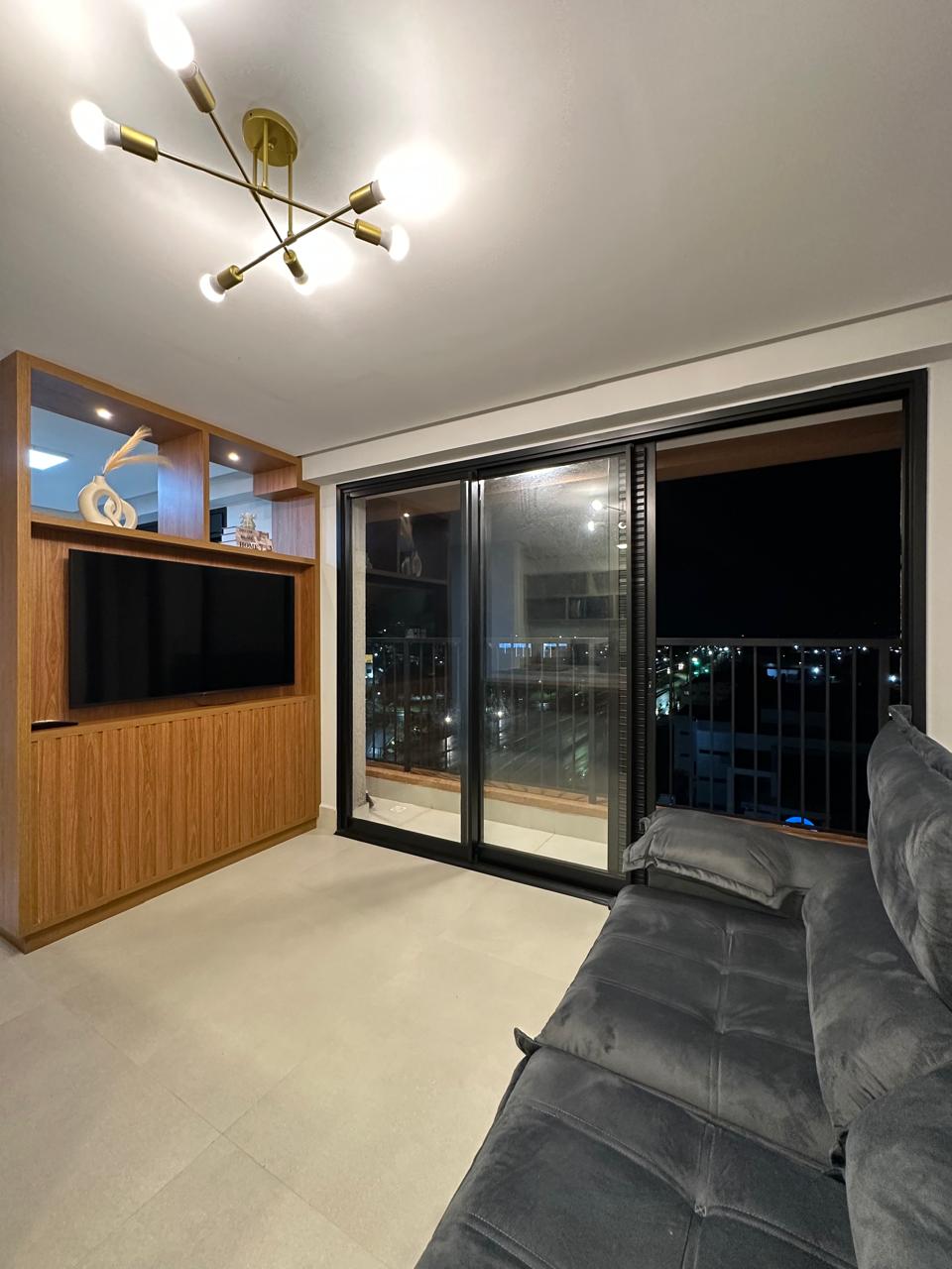 Cerca de UniEvangélica, Hospital de Urgência, Centro Hospitalar Ânima y APAE. 1 baño Cocina integrada, cocina cooktop de 4 hornallas y campana extractora y minibar. Armarios, cama doble, sofá, TV Garaje rotativo Cerradura electrónica Conserjería automatizada Ascensor Lavandería compartida Coworking con parrilla y mesa de juegos Estacionamiento de bicicletas Porcelanato pulido 60x60 Aire acondicionado