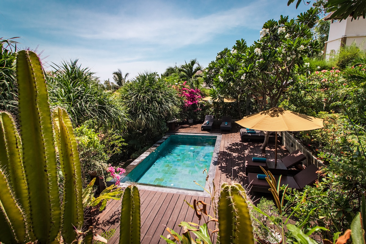 Imagínate un paraíso tropical. Imagina despertarte mientras el sol sale fuera de tu habitación de lujo, decorada con orquídeas y frangipani. Al abrir la ventana, entra una suave brisa, llena del canto de los pájaros y el aroma de las flores. Siéntate en una silla cómoda y disfruta del paisaje o baja las escaleras para sumergirte en la piscina infinita. Después, bebe un zumo de frutas saludable y recién batido, y planifica tu día, todo lo cual te traerá una sensación de relajación y satisfacción.