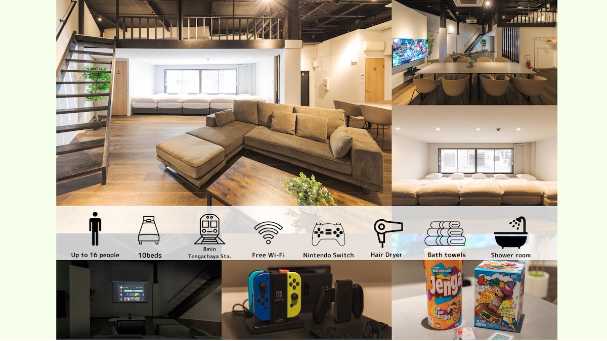 難波5分!/ 関西空港まで直通アクセス抜群/ 1室丸々貸切/ Nintendo Switch【zg】