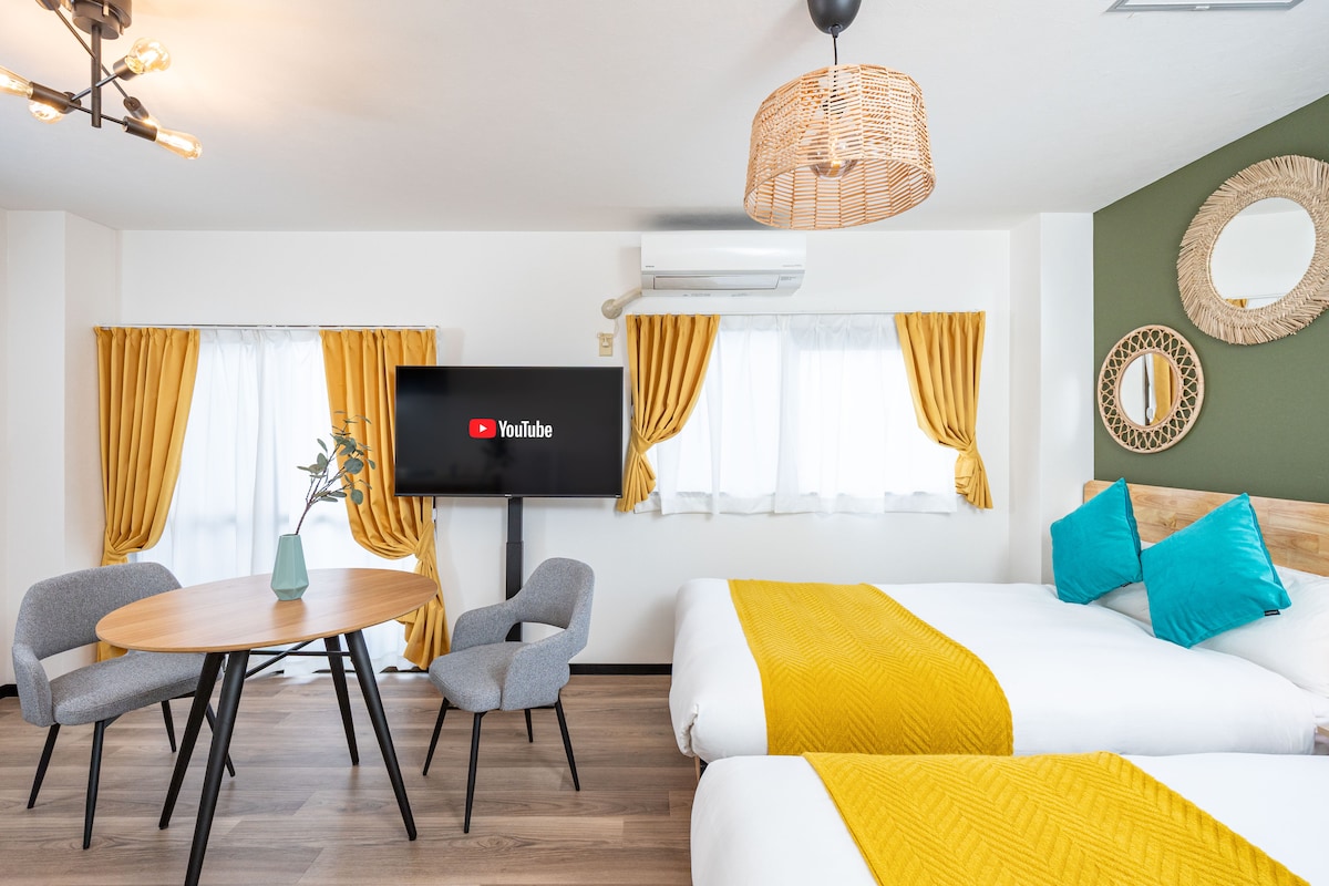 Calificación promedio: 5 de 5, 4 reseñas[Nueva apertura] Conexión directa con el aeropuerto de Kansai/A 2 minutos a pie de la estación de Tenchaya. ¡Buen acceso a Namba y Shinsaibashi! Habitación 501 para 4 personas