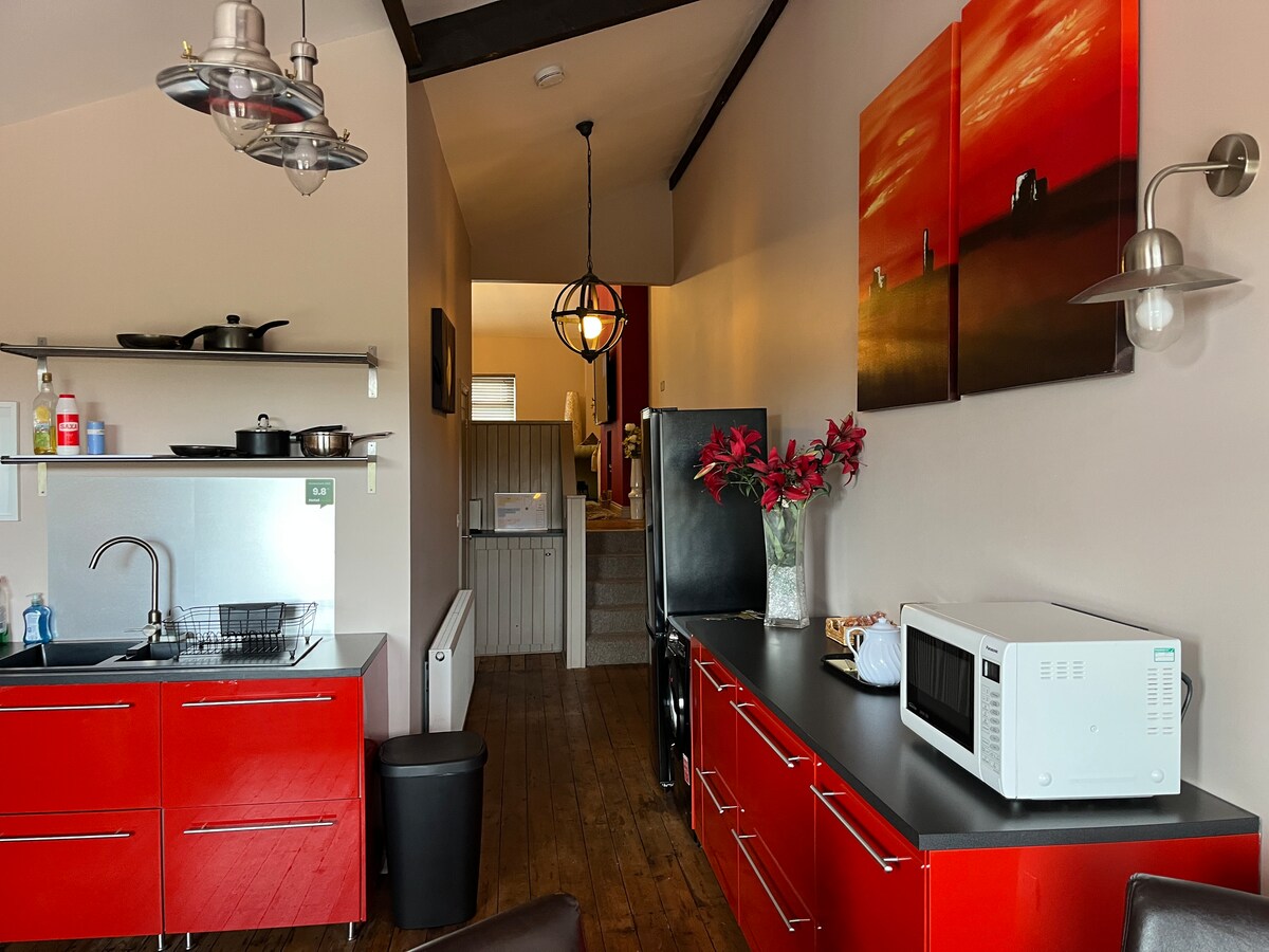 Nuestra casa de campo es un salón/cocina que es luminoso y espacioso con puertas francesas que conducen al patio. Proporciono leche, té, café, azúcar, cereales, pastel, galletas. Tenemos una lavadora y secadora en la cocina. Estos NO son para uso de estancias de una noche, solo para huéspedes que se alojen 4 días o más. Arriba, dormitorio doble, TV, secador de pelo, armario, perchas, mesitas de noche, lámparas, plancha y tabla de planchar. Baño con bañera y ducha superior. Proporciono toallas, gel de ducha, champú, acondicionador y rollos de papel higiénico.