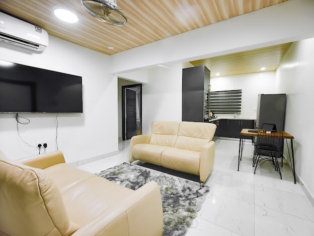 Disfruta de tu estadía en este elegante apartamento de 1 dormitorio amueblado en East Legon, Accra. El apartamento está a 14 minutos del Aeropuerto Internacional de Kotoka y está cerca de The AnC Mall, Pulse Gym and Fitness, y de varios restaurantes y restaurantes, incluidos KFC y Pizza Hut. Además de todo lo anterior, contamos con un generador de reserva y un sistema de almacenamiento y bombeo de agua, por lo que nunca tendrás un corte de electricidad o agua.