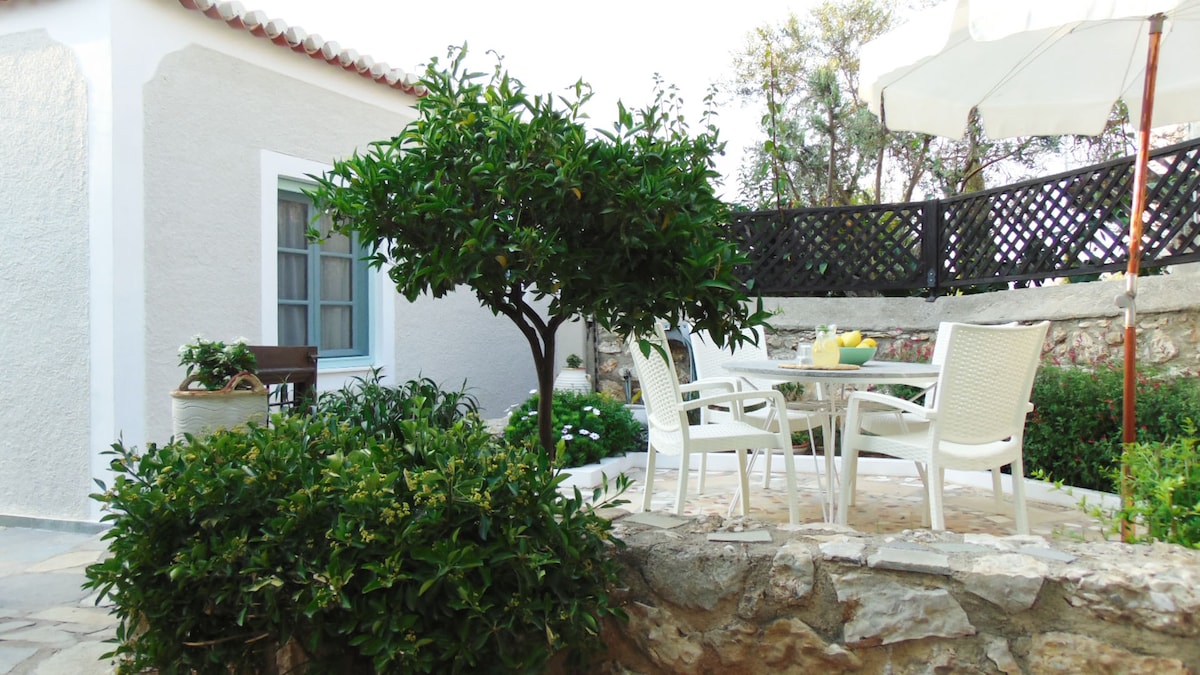Nuestra casa es una antigua mansión espaciosa en el corazón de Spetses, con un gran patio en un lugar tranquilo. ¡Está a solo 6 minutos a pie del centro de la ciudad y del puerto de la isla! El Museo histórico de Bouboulina está a 50 metros de distancia. ¡Puedes llegar fácilmente a la playa en 3 minutos a pie, así como a la estación de autobuses! Está amueblado con antigüedades originales, ¡está lleno de luz y espíritu tradicional! Puede alojar fácilmente a familias y grupos grandes en sus habitaciones grandes.