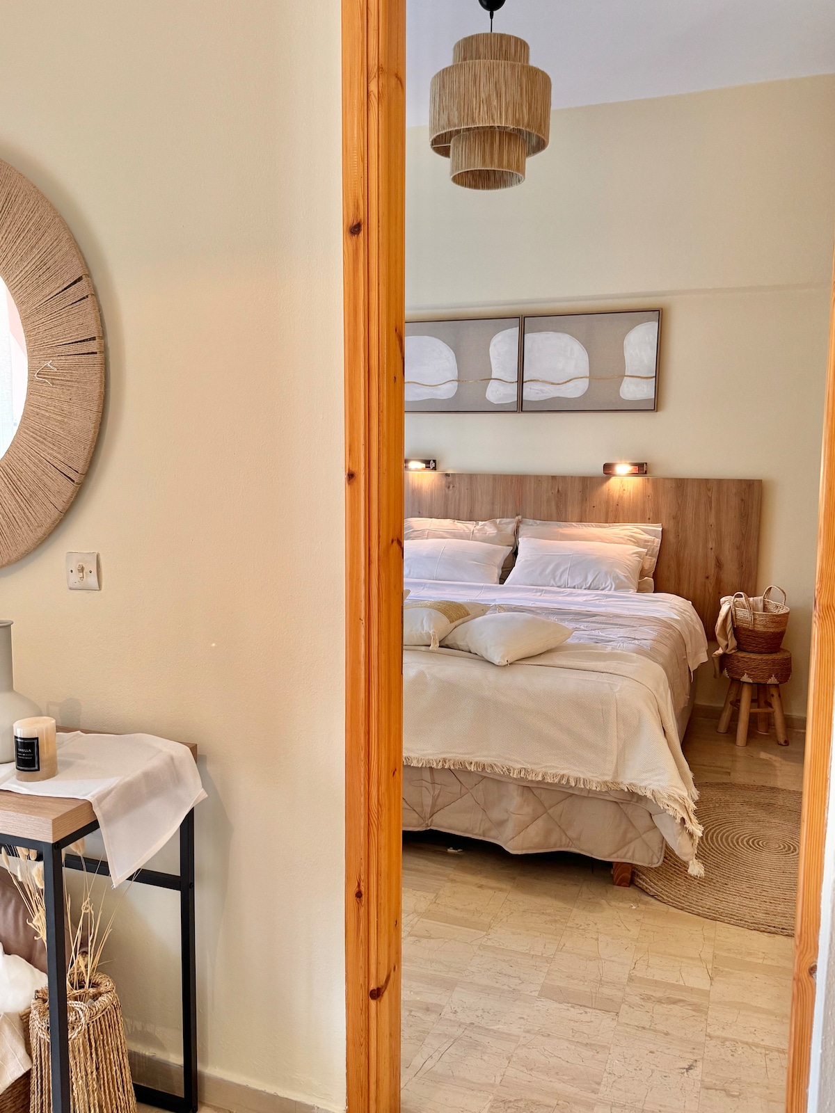 Bienvenido a nuestro apartamento en Paleokastritsa. Situado en una zona tranquila, rodeado de una gran cantidad de olivos, es el refugio perfecto para relajarse y sentirse renovado. Adecuado para familias, amigos y parejas. Tiene 100 metros cuadrados con aparcamiento gratuito y un jardín privado. Diistancias: - A solo 500 metros del supermercado más cercano, tabernas. - A 3 minutos en coche de la playa principal.