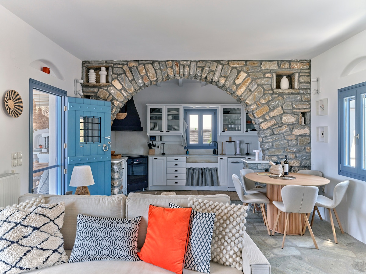 The Olive House es una casa única, recientemente reformada y redecorada en 2023, ubicada dentro de Apianes Villas en Agkairia, en el suroeste de la isla de Paros, con vistas a la naturaleza, la isla de Antiparos y el sol poniente. La Casa Olive ha sido decorada con cuidado e inspiraciones de todo el mundo, mientras que se basa persistentemente en las raíces de la tradición cicládica. Las vistas al mar Egeo, Antíparos y los olivos harán que tu estancia sea inolvidable.