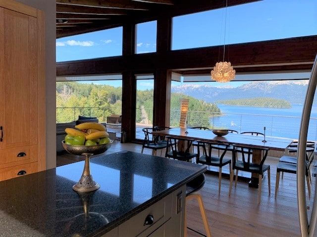 Casa en Villa La Angostura con espectacular vista al lago en barrio Bandurrias. El río correntoso está a 1.9km caminando, el Nahuel Huapi a 2.1km el Espejo Chico a 5km por el sendero del camino viejo. Tiene 3 dormitorios, dos baños completos más toilette de recepción. Cocina súper equipada. WIFI y cable por fibra óptica. Smart TV. Generador eléctrico. Parrilla y fogonero. Calefacción losa radiante. Aires acondicionados y hogar a leña. Inmenso deck con vista al lago y mobiliario de exterior.