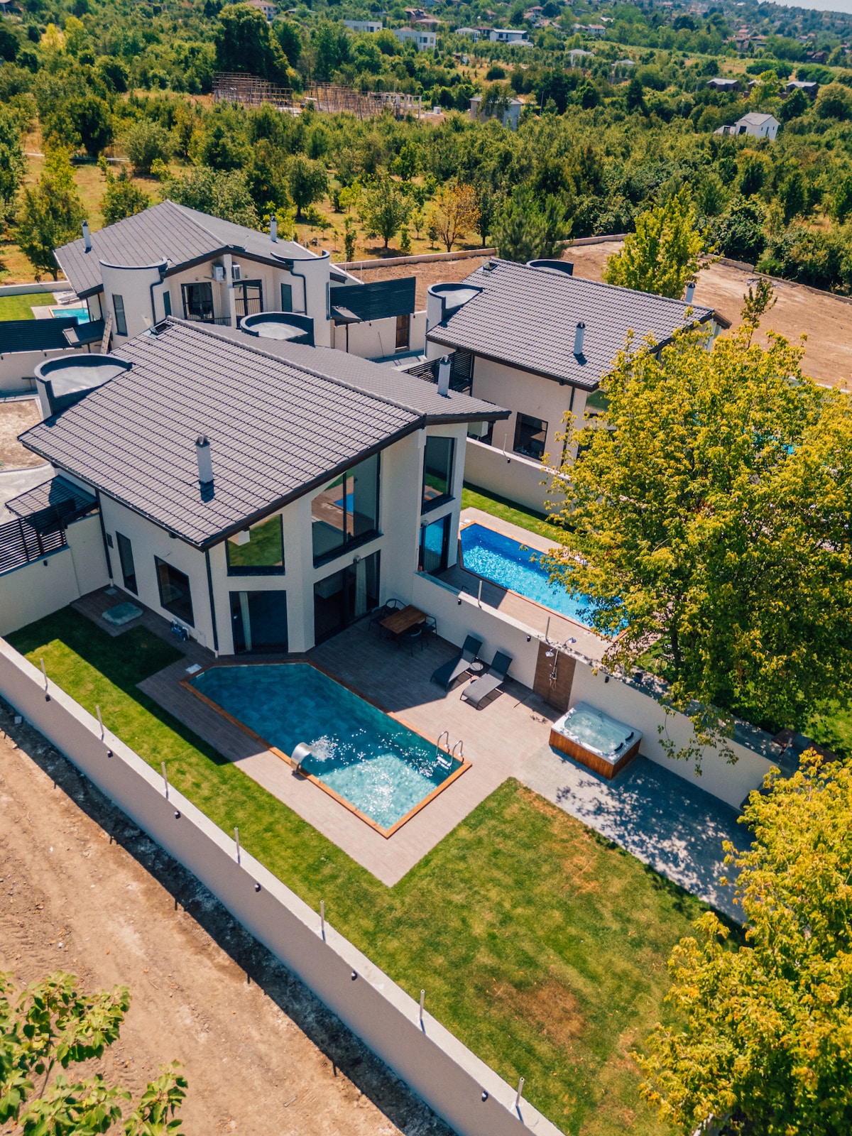 Una piscina privada infinita con vistas al valle, un ambiente único que te hace sentir tranquilidad en cualquier momento del día crea. Puedes pasar el tiempo en el gran jardín como quieras, y tener noches agradables con tus seres queridos en la zona de barbacoa puedes vivir. Esta villa privada, que se integra con la naturaleza con sus dos dormitorios y arquitectura completamente de madera, ofrece una experiencia de alojamiento cómoda en cuatro estaciones con su interior diseñado con detalles elegantes, amplio espacio habitable y vista panorámica.