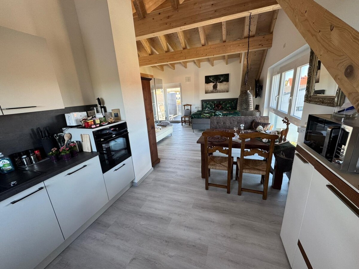 El espacio: El apartamento cerrado con llave está en el piso superior de una casa de dos familias en una ubicación idílica. El dormitorio con cama matrimonial (1.80 m x 2.00 m) es muy espacioso. El salón-comedor de planta abierta y bellamente cortado está equipado con una mesa para cuatro personas, así como un cómodo sofá cama con TV. Desde el comedor se puede acceder a la terraza de la azotea con toldo, desde la que tienes una vista fantástica.