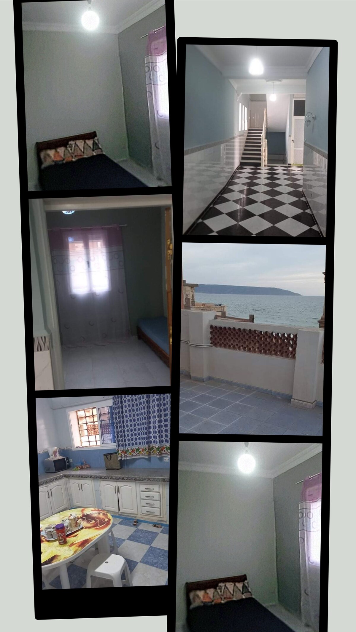 Alojamiento familiar con una superficie de 100 m2. Terraza de 30m2. Situado a 300 m del mar en el centro de la ciudad de Ain el Turck en Orán. Barrio apacible y vecindario de confianza. Todos los servicios cerca: Múltiples restaurantes y supermercados, Médicos, Farmacia, Carnicería, Peluquería. El alojamiento puede alojar hasta 4 personas: 1 cama doble+ 2 sedaris marroquíes. Posibilidad de colchón en el suelo para una quinta persona. Cuna bajo petición. PD: No se toleran fiestas.