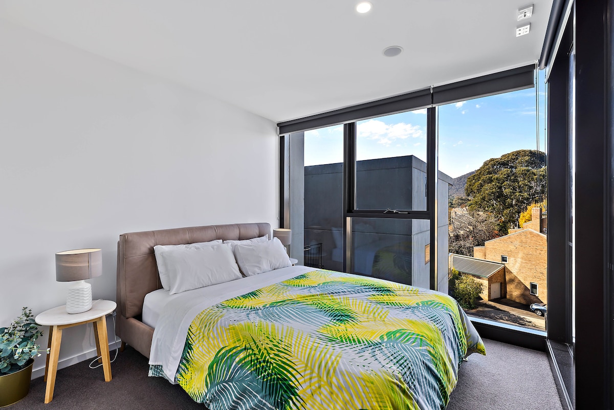 Olvídate de tus preocupaciones en este espacio espacioso y sereno. - @ Sentinel apartment - ¡Todas las ventanas orientadas al norte con vistas al lago! - Amplia sala de estar para 1 cama. - Estacionamiento seguro en el sótano con fácil acceso. Los mejores servicios: - Televisión inteligente Samsung de 75pies. - Cafetera Nespresso con cápsulas gratuitas. - Pava y tostadora. - Cama tamaño queen. Área: - A 1 minuto caminando de Westfield, justo al otro lado de la calle. - A 2 minutos caminando del lago Ginninderra. - Café y Phohub en la planta baja. - Estación central de autobuses en la planta baja. Anfitrión profesional disponible 24/7