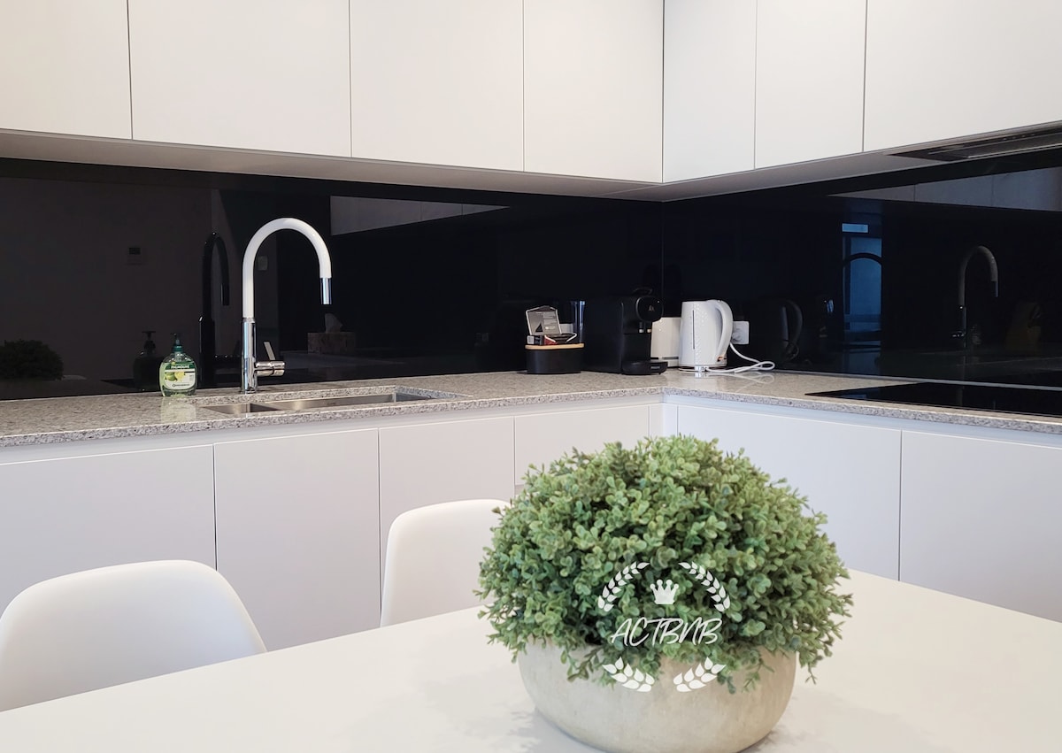 *Book today to unveil the beauty of this lovely apartment :) Key highlight: - One Complementary Secured Parking - Rooftop BBQ area with 180° Mountain View (Building Amenities) - 2 mins walk to Canberra Center - 5 mins walk to Lonsdale St (Place for good restaurants n pubs) - 6 mins drive/17 mins walk to the ANU - 8 mins drive to Canberra airport - 9 mins drive to Mount Ainslie Lookout Our stylish apartment has blackout blinds and quality mattress to comfort your stay.