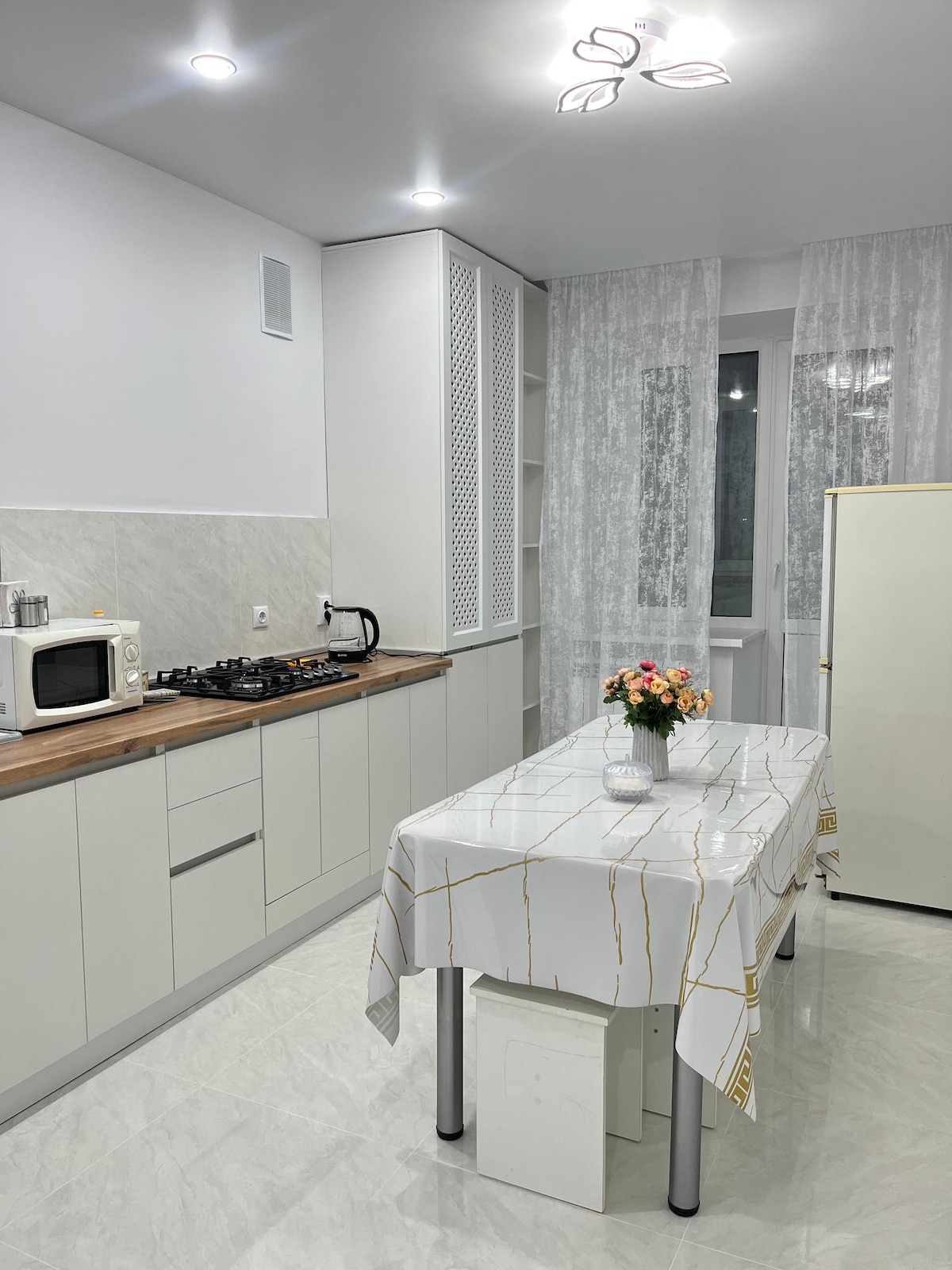 Vuelve a cargar en este lugar tranquilo y elegante. El apartamento cuenta con todo para tu descanso y comodidad. El dormitorio tiene un televisor inteligente con internet , una cómoda cama y un sofá adicional para relajarse . La cocina está equipada con un hervidor electrónico y un microondas con un refrigerador nuevo incorporado, una estufa de gas es todo para su uso. El baño tiene lavadora y secador de pelo . También hay pequeños electrodomésticos como una plancha, una secadora y todos los demás accesorios , toallas blancas como la nieve también.