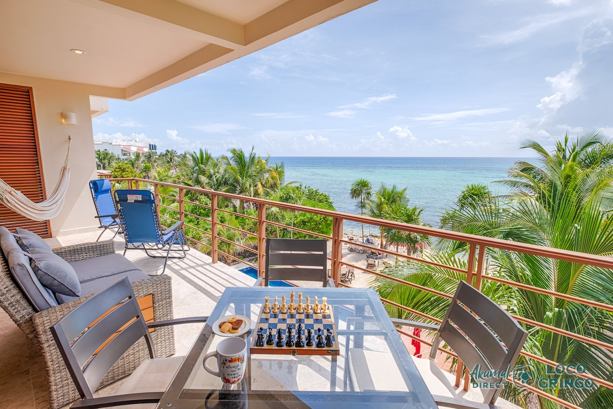 Best location in Puerto Aventuras! The condo is direct oceanfront with spectacular views of the Caribbean. Watch the sunsets from the balcony or upstairs deck. Beautiful quiet, white sandy beach.. Two oceanfront pools. Restaurants and shops are right across the street. Chac Hal Al condo complex with 24 hr gate guarded security. Dependable high speed fiber optic internet/WiFi