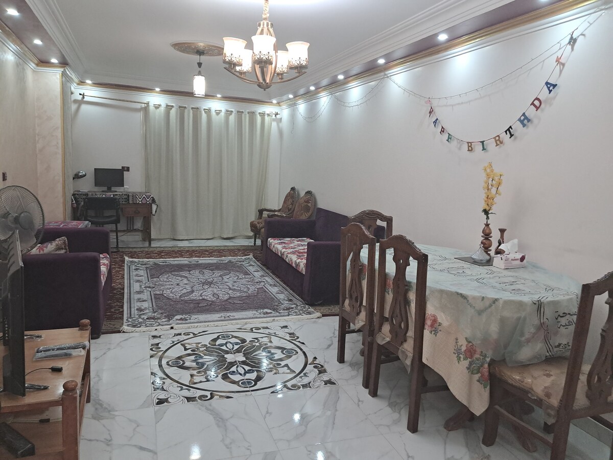 La casa muy cómoda consta de dos habitaciones, un lugar acogedor para alojarse, todos los servicios y está muy cerca de todos los servicios como restaurantes, cafés, clubes de salud, farmacias, centros médicos, centros comerciales, hipermercados, lugares turísticos como la Pirámide, el Gran Museo Egipcio, el Museo de la Cultura, el Zoológico de El Cairo, la Universidad de El Cairo, muchas embajadas, cines y muchos lugares arqueológicos e históricos importantes en El Cairo y Giza. También es muy conveniente para diferentes métodos de transporte es una ubicación muy especial y no se encuentra como en Giza.