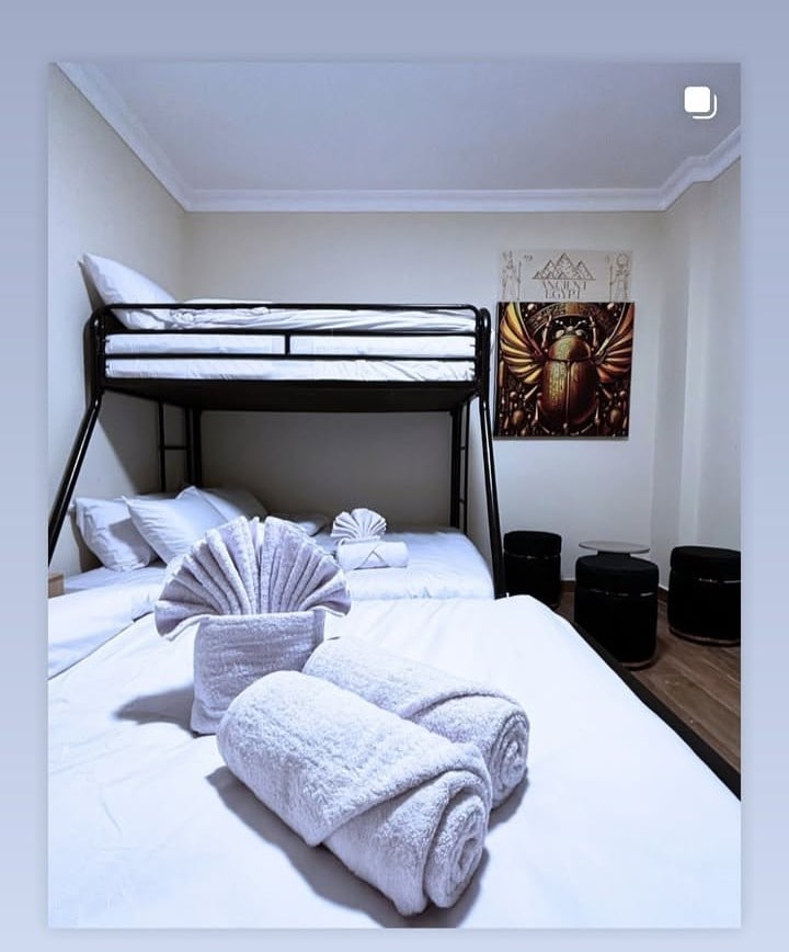Disfruta de las increíbles vistas y la energía de las grandes pirámides de Guiza desde nuestra cómoda habitación. Entrada a las pirámides a pocos minutos, El gran museo egipcio está a 5 minutos, visible desde nuestra habitación. La habitación está equipada con una cama grande y cómoda, Balcón, TV, Aire acondicionado, Mesa de trabajo cómoda, Baño privado, aseo, Mininevera, Hervidor eléctrico y tazas, Wifi, toallas. Estacionamiento gratuito. No se permite fumar en la habitación. Solo se incluye el desayuno básico. No hay ascensor, pero estaremos encantados de ayudarte con tus maletas.