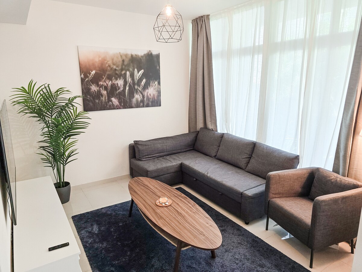 Acogedor apartamento de 1 dormitorio en el sur de Dubái con piscina