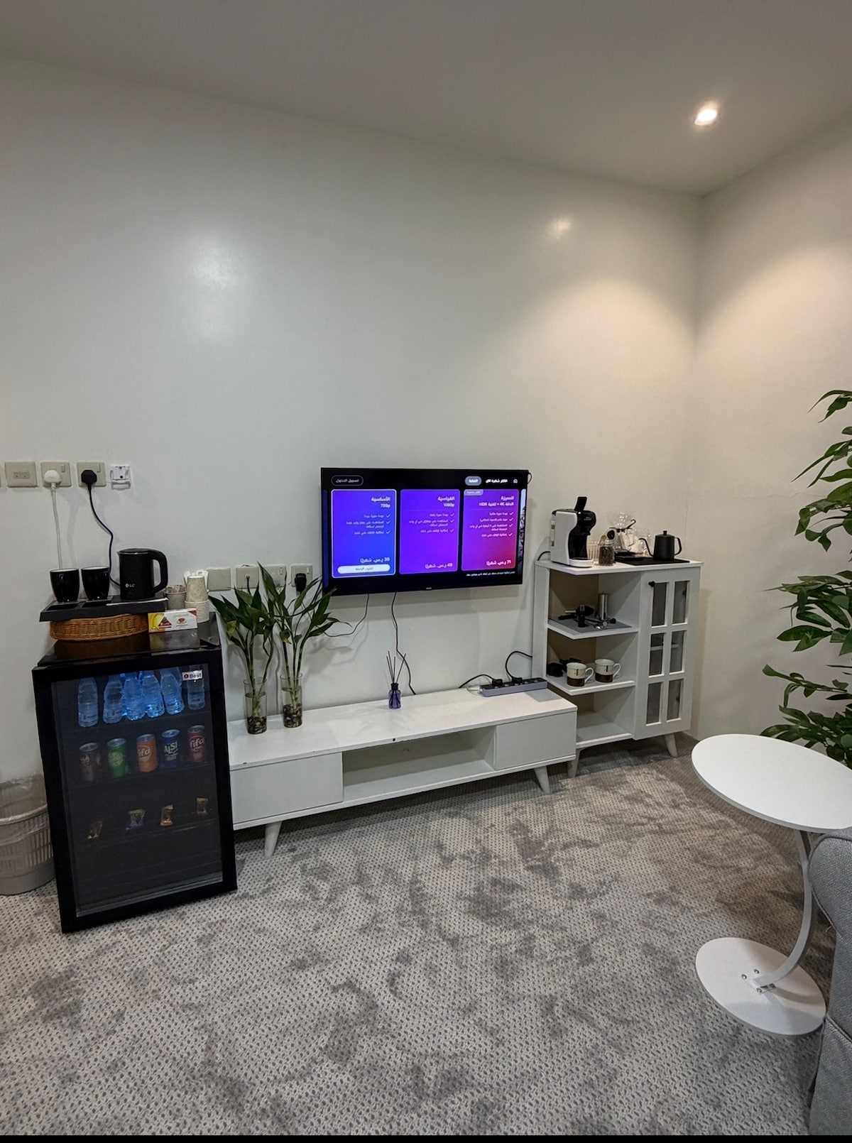 Estudio tranquilo y elegante con un toque diferente para proporcionar la máxima privacidad. Cama matrimonial con una sala de estar tranquila y cómoda. Cuenta con una sencilla zona de café, máquinas de café, un baño con todos sus accesorios y un calentador de agua (cepillo de dientes, pasta de dientes, champú, Jabón, toallas de un solo uso, zapatillas) Se caracteriza por su ubicación detrás de la carretera del rey Abdullah, que incluye muchos restaurantes y cafés y está cerca del parque del rey Abdullah y el centro comercial Al-Ahsa. Entrada inteligente Televisión e Internet y hay plazas de aparcamiento