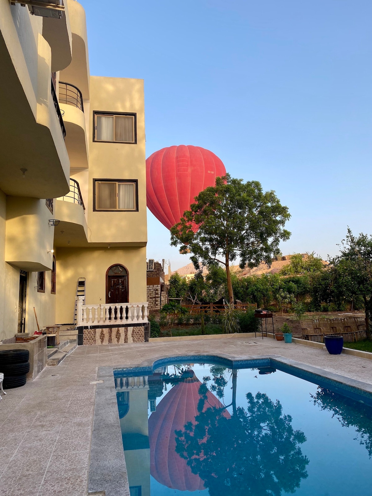 Relájate con toda la familia en este hermoso y tranquilo lugar para hospedarte. Hermosas vistas, habitaciones cómodas, piscina impecablemente limpia, relajante, mesa de billar y mesa de billar disponibles para su uso. Esta ubicación está convenientemente ubicada cerca del Templo de Luxor, Karnak, el Valle de los Reyes y también convenientemente cerca del Aeropuerto Internacional de Luxor. Estamos a poca distancia a pie de Banana Island, tiendas, restaurantes y cafeterías.