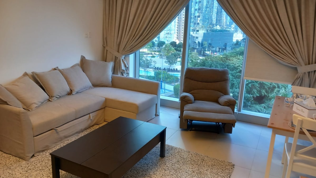 Un galardonado desarrollo de cinco estrellas multiusos, Una acogedora piscina y vistas al mar totalmente amuebladas, la sala de estar tiene armarios empotrados para el almacenamiento, Internet de alta velocidad está conectado, Bose solo, TV por cable, cocina siemens y lavavajillas, lavadora LG secadora, refrigerador Hitachi, la cama Ikea con colchón Ikea y Pad, sofá cama Ikea, silla reclinable, El edificio tiene 6 ascensores y 1 ascensor de servicio, recreación en el podio 3 piscinas, 5 gimnasio, tenis de mesa y más. no dudes en hacérmela.