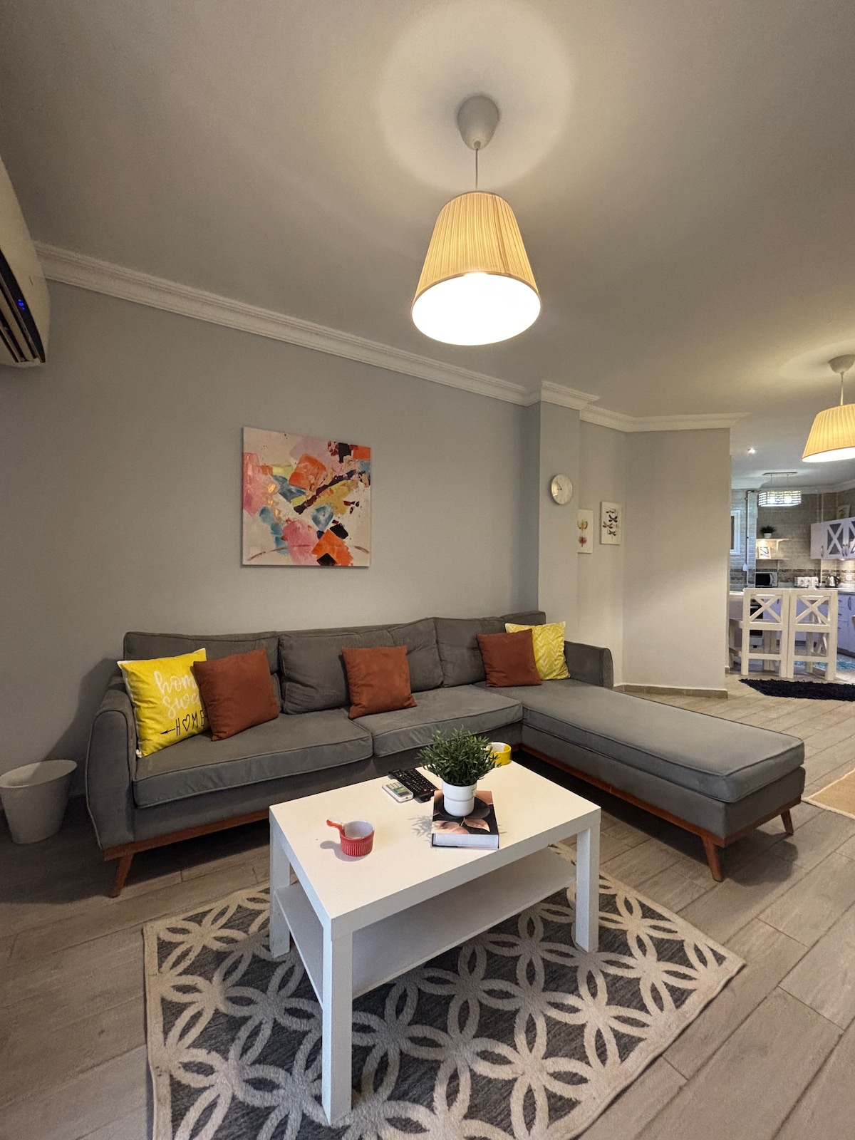 ¡Bienvenido a tu escapada perfecta! Este elegante apartamento cuenta con 2 dormitorios y una elegante recepción, por lo que es ideal para familias o grupos de amigos. Mantente fresco y cómodo con el aire acondicionado, perfecto para los cálidos días de verano. La decoración moderna y el ambiente acogedor crean un ambiente acogedor que se siente como en casa. El apartamento es elegante y ordenado, y ofrece un ambiente sereno y refrescante. A 5 minutos de Rehab Mall, The Market y The food Court. *A 15 minutos del aeropuerto*