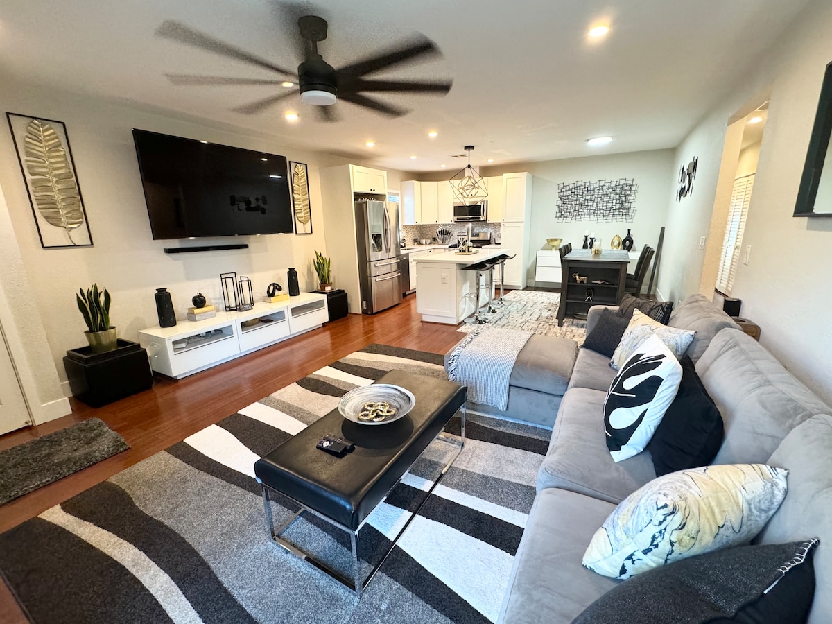 Relax in this cozy Santa Rosa getaway designed for comfort and fun. The home features three bedrooms, two full bathrooms, hardwood floors, and an open living space with a 4K Smart TV and portable A/C in summer. Enjoy indoor entertainment in the game room with a pool table. Just a short drive to Luther Burbank Home & Gardens, Trione-Annadel State Park, Howarth Park, Safari West, and local Sonoma County wineries.