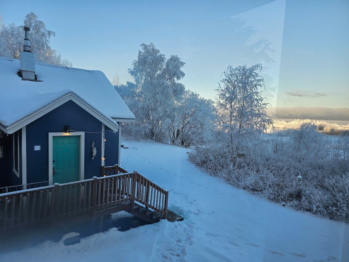 La casa de campo es una casa de huéspedes aislada en un barrio agradable con vistas espectaculares al glaciar Knik y al río. Este refugio tiene capacidad para un máximo de cuatro huéspedes. Es un plano de planta abierta con una cama doble en la planta baja y dos camas individuales en un loft de arriba. La cocina tiene placa de inducción, nevera, cafetera y microondas. Barbacoa de propano en la terraza y baño con ducha. Nuestra casa de campo no es visible desde la zona de aparcamiento, por lo que el registro autónomo no es una opción.