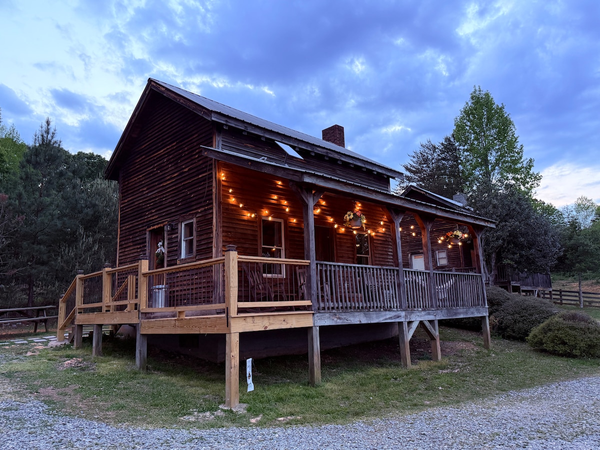 A original cabin with modern updates, offering a countryside retreat just a short drive from Charlotte. Escape the city and unwind in this cozy cabin, surrounded by nature trails and a serene pond. Relax on the back porch, grill up some dinner, explore nearby vineyards, float down the Rocky River, tour Reids Gold Mine. Book your stay at The Andrews Farm for a charming getaway filled with relaxation and outdoor adventures.