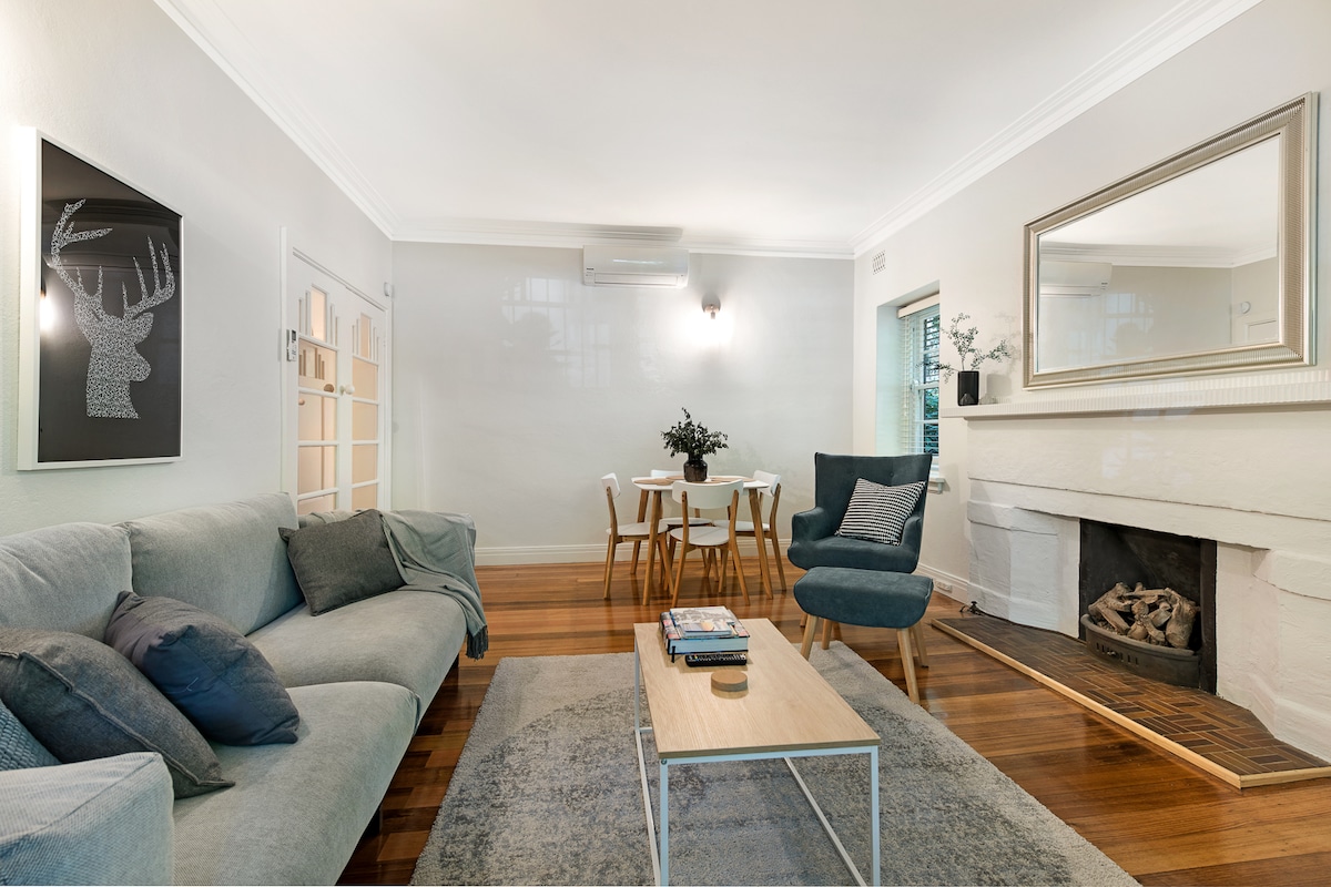 Retiro tranquilo de estilo loft en el corazón de Albert Park. Amplio espacio abierto con suelos pulidos, encanto vintage y comodidades modernas. Relájate en la cama de latón tamaño king o en los sofás de cuero. Disfruta de wifi, TV con Netflix, aire acondicionado y una pequeña cocina compacta. Entrada privada solo para invitados. Aparcamiento en la calle sin restricciones con el permiso del anfitrión Parques, playa y restaurantes locales a poca distancia a pie y una parada de tranvía al CBD de Melbourne a solo 70 metros.
