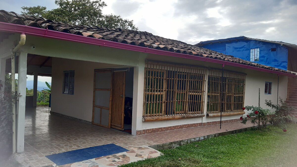 Conecta con la naturaleza en esta escapada inolvidable. En el corazón del eje cafetero a 40 min de Pereira de armenia de Cartago. A 30 min de filandia, del parque del café. No gastes tu dinero en estancias costosas, te ofrecemos un alojamiento espectacular, de donde podrás salir a conocer el eje cafetero, sin gastos en exceso, cocina,lavadero, lavadora, agua caliente, rio cerca en la misma propiedad. es una casa en material muy nueva, con todas las comodidades y con espectaculares vistas.