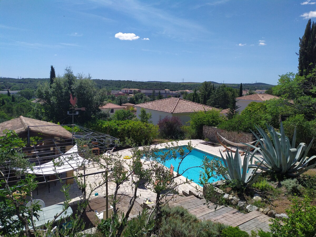 A las puertas de Cévennes, estaremos encantados de recibirle en nuestro apartamento situado cerca de Alès y de numerosos comercios y servicios (panadería, supermercado, tabaco, farmacia, médico...). Muchas actividades posibles: , Pont du Gard, Uzès, Aviñón, Nimes, río, senderismo, actividades en familia... Parejas, viajeros solos o de negocios, familias, disfrutará con nosotros de la tranquilidad y la vista. Los amigos de cuatro patas también son bienvenidos. No hay piscina.