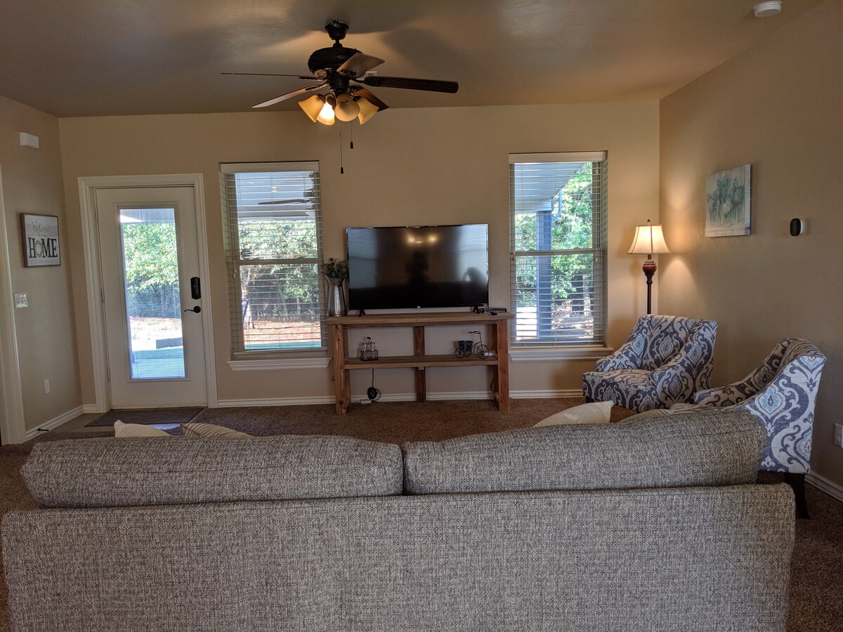 Relájate y desconecta, esta hermosa cabaña con estructura en A está ubicada en 2,5 acres privados de paz y tranquilidad. Escapa de la vida urbana en esta cabaña inmaculada con una cocina moderna con muebles nuevos. Las escaleras de caracol conducen a un loft de tamaño cómodo y a una zona de dormitorio. A poca distancia en coche, podrás disfrutar de las bodegas locales, las atracciones y el siempre popular Parque Estatal del Lago Thunderbird. Una vez de vuelta en casa, es hora de disfrutar de la espaciosa terraza con chimenea junto con unas vistas espectaculares del paisaje.