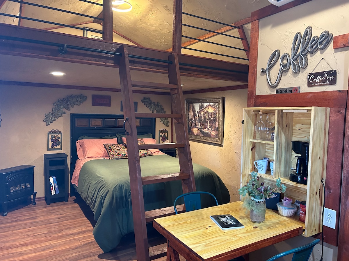 En Lori's Country Cabins puedes relajarte y descansar en esta escapada única y tranquila en el campo, pero aún así cerca de la ciudad. La cabaña italiana ofrece un porche privado con asientos, parrilla de carbón y un pozo de fuego justo fuera de tu cabaña de estilo dúplex. Prepara un refrigerio o una comida completa con una cocina pequeña. Más de dos personas, no te preocupes, hay un loft con una escalera móvil para un fácil acceso con un colchón en el suelo. Se admiten mascotas por una tarifa no reembolsable.