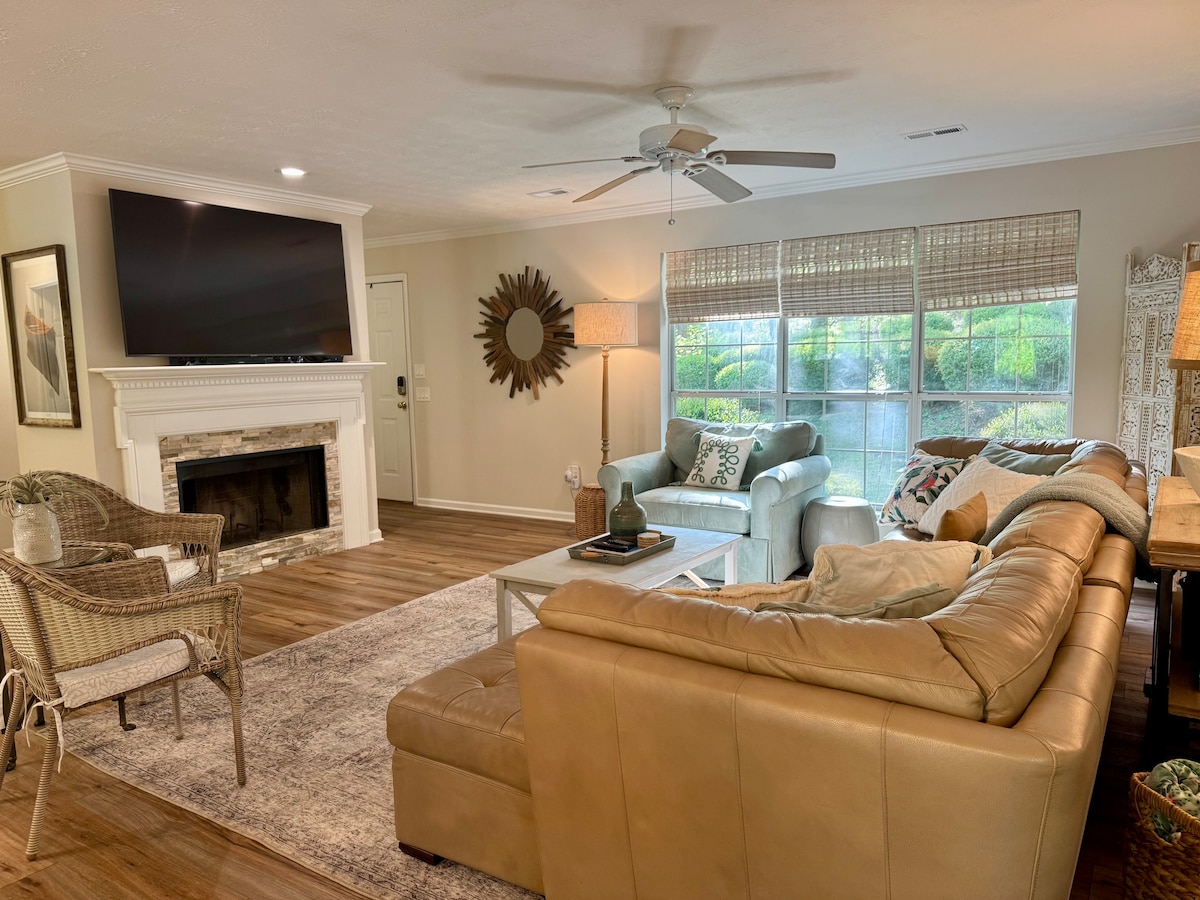 Located on the Montgomery side, this amazing Lake House sits on a flat lot offers 450 feet of water front. It is very private. There are many outdoor areas like the gazebo, two docks, fire pit, and a floating dock. You'll love the coziness of the large fireplace and the open floor plan with high ceilings. You're 5 minutes from Children's Harbor and 10 minutes from Catherine's Market and The Springhouse. Make sure to make a reservation for Springhouse.