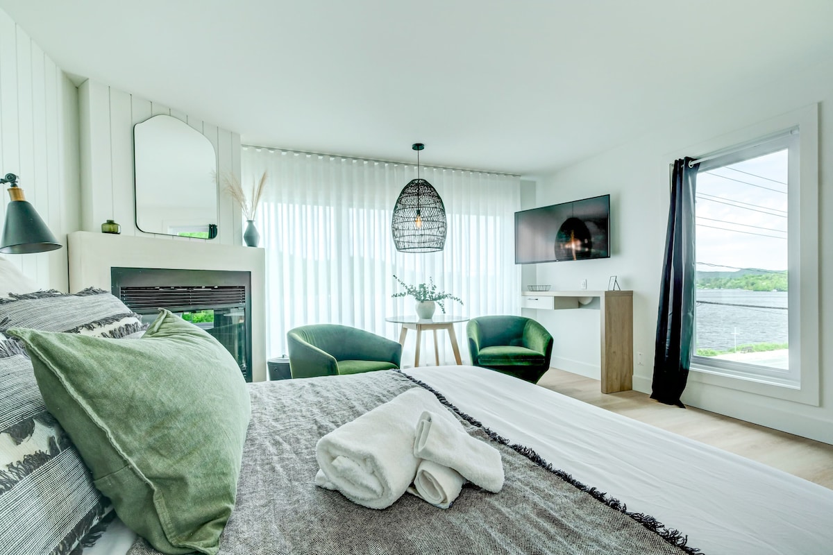 ☞ Bienvenido a la encantadora casa de campo LoveNest, su remanso de paz ideal para una escapada romántica en el corazón de la naturaleza en Laurentides, cerca de la provincia de Ontario ☞ Con generosas ventanas que enmarcan impresionantes vistas de la majestuosa montaña y el lago está diseñado para proporcionar una escapada íntima para aquellos que buscan tranquilidad ☞ Encaramado en la cima de un terreno montañoso de más de 50 000 pies cuadrados