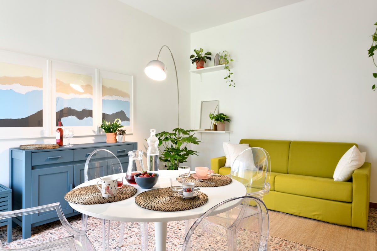 Twin House 2 es un gran apartamento de los años sesenta, totalmente reformado, pero conservando el encanto vintage de los suelos de piedra y las habitaciones de colores. Consta de dos apartamentos de dos habitaciones independientes: Twin 1 y Twin 2. En el barrio se encuentran todos los servicios, desde el supermercado a los restaurantes y bares con vistas al mar para desayunar o tomar un aperitivo al atardecer. Los ambientes son acogedores y están perfectamente equipados.
