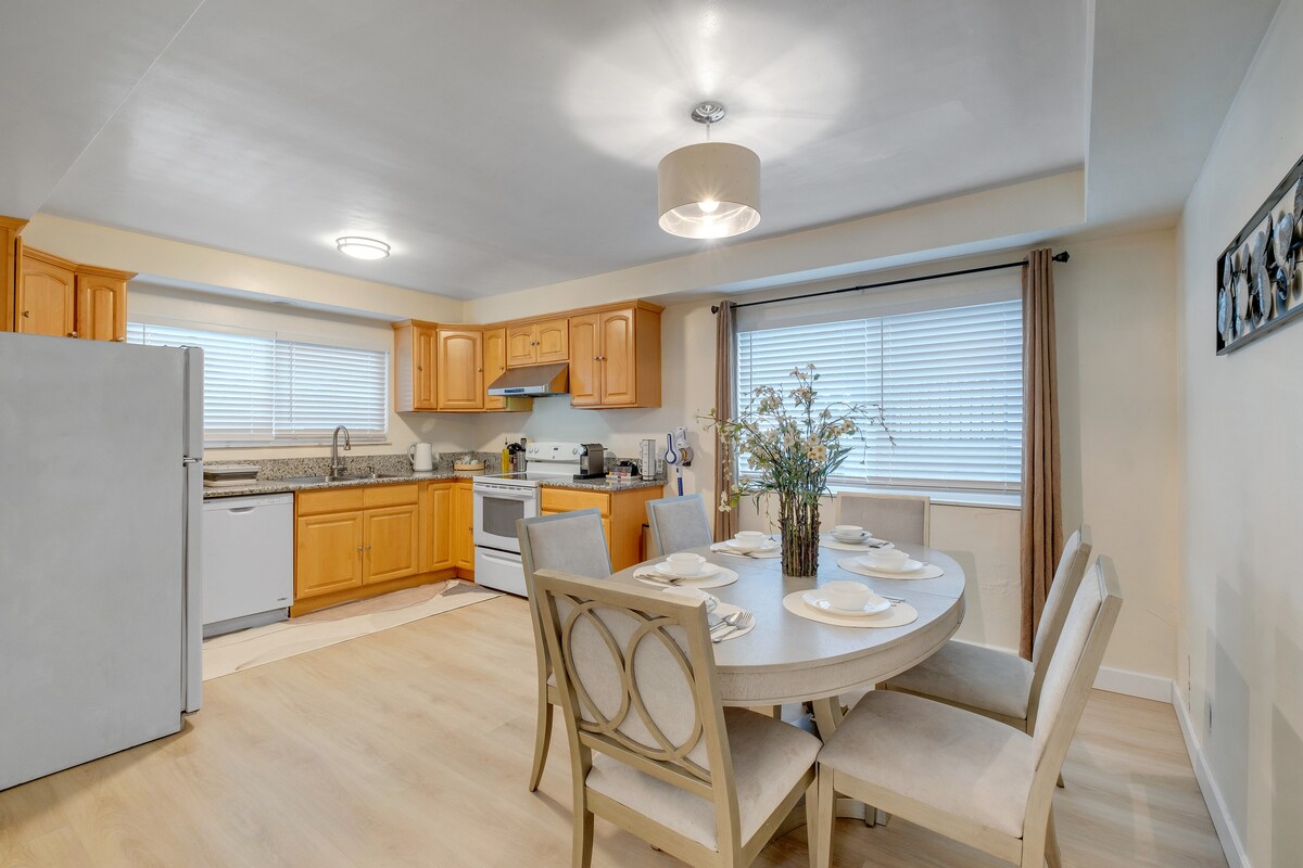Ubicada en un barrio seguro y tranquilo, esta espaciosa casa recientemente renovada es perfecta para un grupo grande de personas. Hay 3 dormitorios luminosos y cómodos, cada uno amueblado con una cama tamaño queen. Hay una habitación adicional que se puede utilizar como habitación de invitados o espacio de entretenimiento. La habitación extra está amueblada con un sofá cama tamaño queen y un televisor de pantalla plana. La sala de estar llena de luz se abre al patio sereno. Junto a la sala de estar se encuentra el comedor y la hermosa cocina moderna.