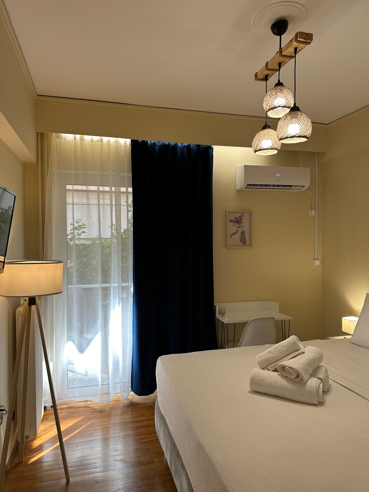 Estudio moderno, acogedor y totalmente amueblado, idealmente situado en Tavros, a solo 10 minutos del centro de Atenas (Monastiraki, Thissio) y a menos de 15 minutos del puerto de El Pireo (ideal para ir de isla en isla). Ubicado en la 4ª planta de un edificio tranquilo, este luminoso piso con aire acondicionado incluye: Cama semidoble y sofá cama Cocina totalmente equipada. Wi-Fi y Netflix gratis Ropa de cama y toallas limpias Entrada privada con acceso al ascensor ¡Perfecto para parejas, viajeros solitarios o nómadas digitales!
