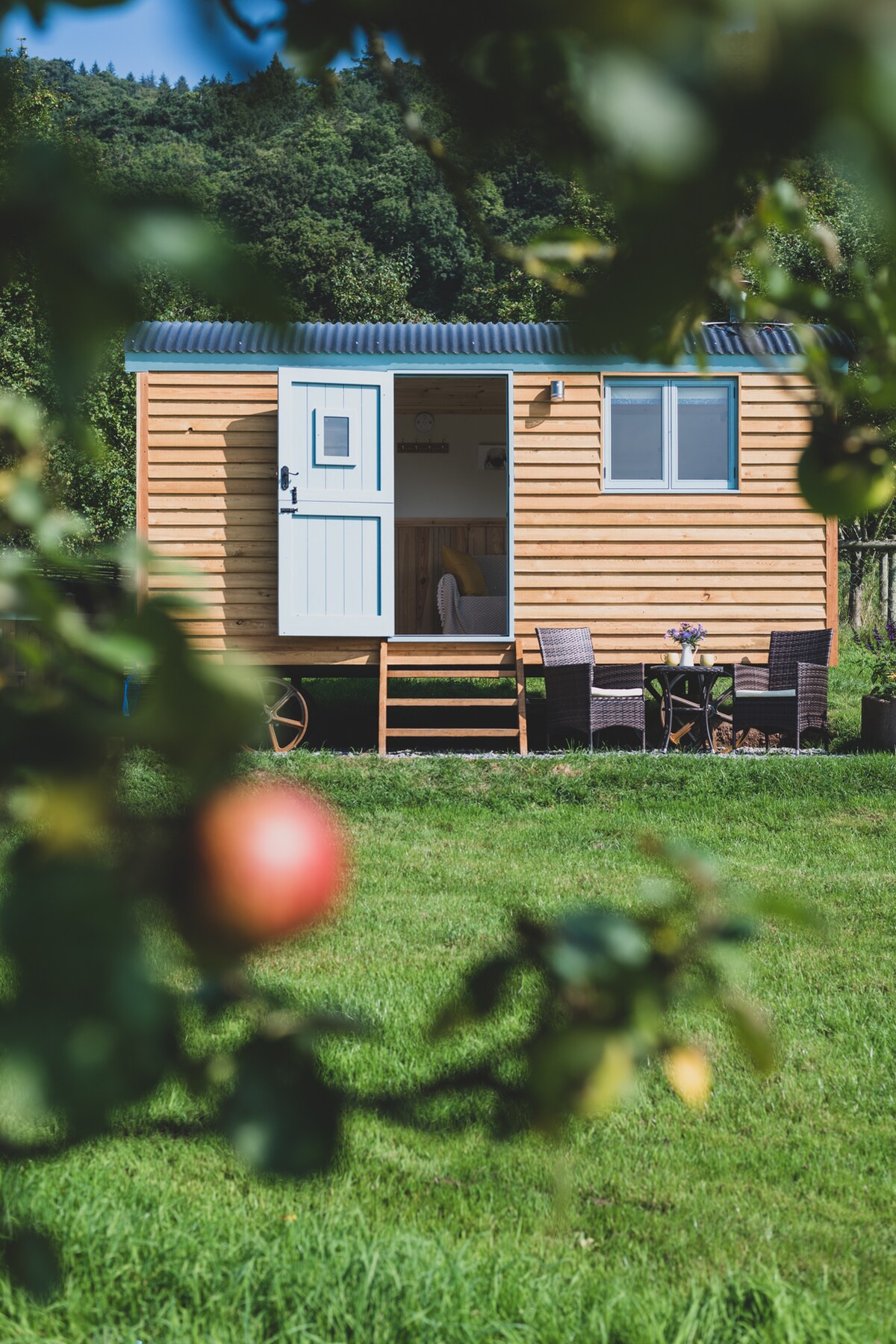 Relájate y desconecta en esta hermosa cabaña de pastores fuera de la red eléctrica, ubicada en un huerto en nuestra granja en funcionamiento. Situada en un pequeño sitio de glamping cerca de la costa, es la base perfecta para explorar la hermosa Exmoor. Nuestra cabaña tiene una bañera de hidromasaje calentada con leña para tu llegada la primera noche, una cómoda cama doble, una estufa de leña, un fogón al aire libre y tu propio baño privado con ducha a solo 30 metros de distancia, lo que la convierte en el espacio perfecto para experimentar la naturaleza con todos los lujos necesarios para una estancia verdaderamente relajante.