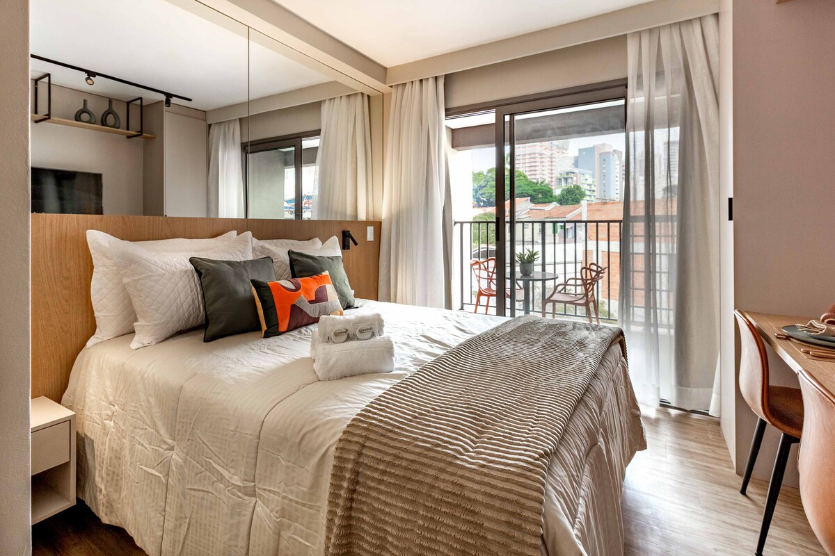 Acogedor estudio, en un barrio seguro y MUY bien ubicado para solteros o parejas en Perdizes. Cerca de: - Allianz Parque - PUC - Shopping Bourbon - Metro Barra Funda - Espacio Unimed - Memorial de América Latina - Mercado Libre Arena Pacaembu El alquiler ofrece al huésped: - Wi-Fi - Smart TV (con Netflix ya registrado) - Aire acondicionado - Gimnasio - Aparcamiento de bicicletas - Lavandería - Espacio de co-work - Conserjería 24h El estudio también está a poca distancia de mercados, panaderías, restaurantes, tiendas y farmacias.
