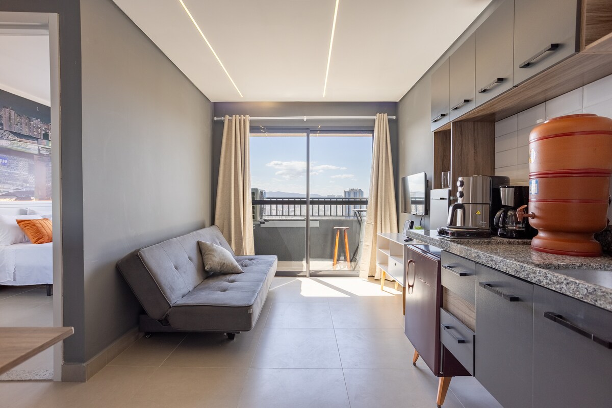 Estudio 40011: a 4 minutos de Allianz Park. Estudio compacto, moderno, completo y cómodo en una de las regiones más culturales de São Paulo. 📍 Rodeado de cafeterías, restaurantes y espectáculos. Aquí late la ciudad ✨ Cama acogedora, encimera, armario, aire acondicionado, TV y cocina equipada con sandwichera, freidora de aire, cafetera, fogones y nevera. 🚿 Baño privado e iluminación acogedora. Con ese rollo de «quiero quedarme un poco más» Perfecto para disfrutar, descansar o trabajar. ¡Reserva ahora!