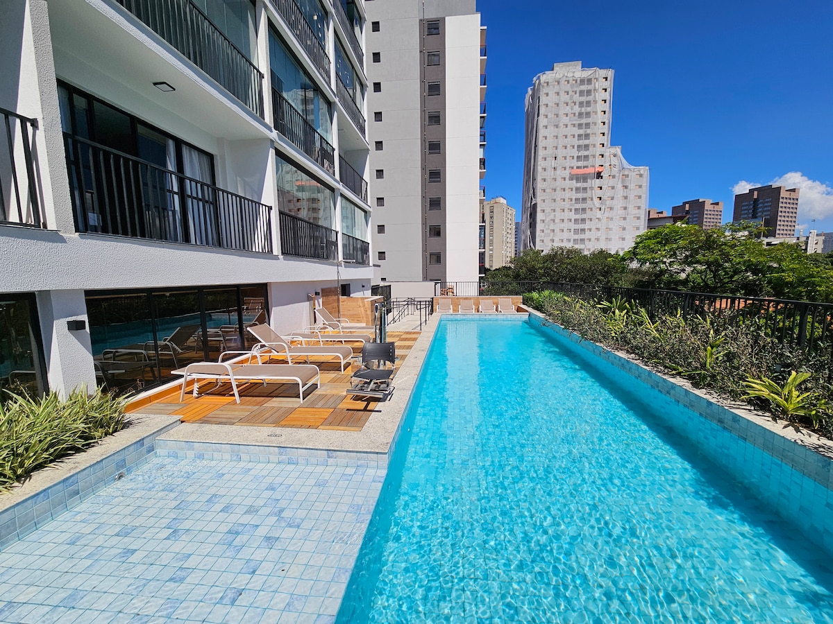 Studio You Faria Lima c/ piscina e vaga veículo.