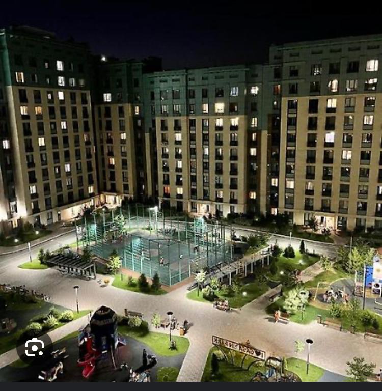 El complejo residencial cuenta con todo lo que necesitas: cafeterías, restaurantes, un supermercado, una sala de fitness. No muy lejos del complejo residencial hay estaciones de metro Abai y Baikonur, el estadio central, el circo estatal, el Parque Mir Fantasy, el teatro de la finca Auezov, el complejo deportivo llamado Baluan Sholaka, hospitales. El apartamento está equipado con todas las cosas necesarias para: - Cama matrimonial cómoda. - Sábanas y toallas frescas - Wi-Fi de alta velocidad - electrodomésticos y utensilios necesarios - Aire acondicionado Televisión Filtro de agua - productos DE higiene personal