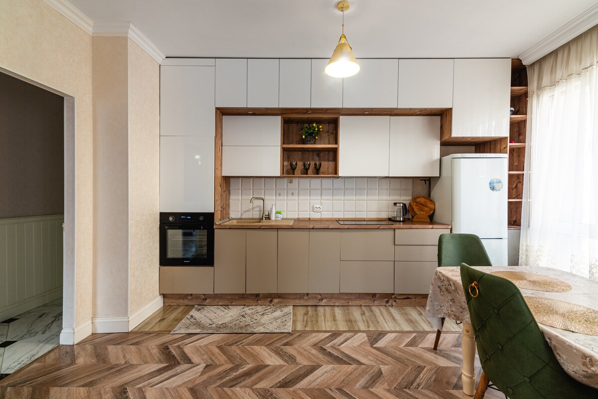 Apartamento de lujo con su propio estilo único. Muy espacioso. En el interior, todo está pensado hasta el más mínimo detalle. Ubicación conveniente. Cerca hay una hermosa panadería, una cafetería con pastelería fresca, varios restaurantes, una tintorería, un salón de belleza, una tienda de comestibles 24/7, una cafetería, una farmacia. Hay aparcamiento y parking. La cocina y el dormitorio están aislados. Cálido, limpio y muy acogedor. Para los verdaderos conocedores del orden. Hay un armario espacioso. Internet rápido, smart tv. Y la vista desde la ventana deleitará tus ojos con su grandeza y belleza.