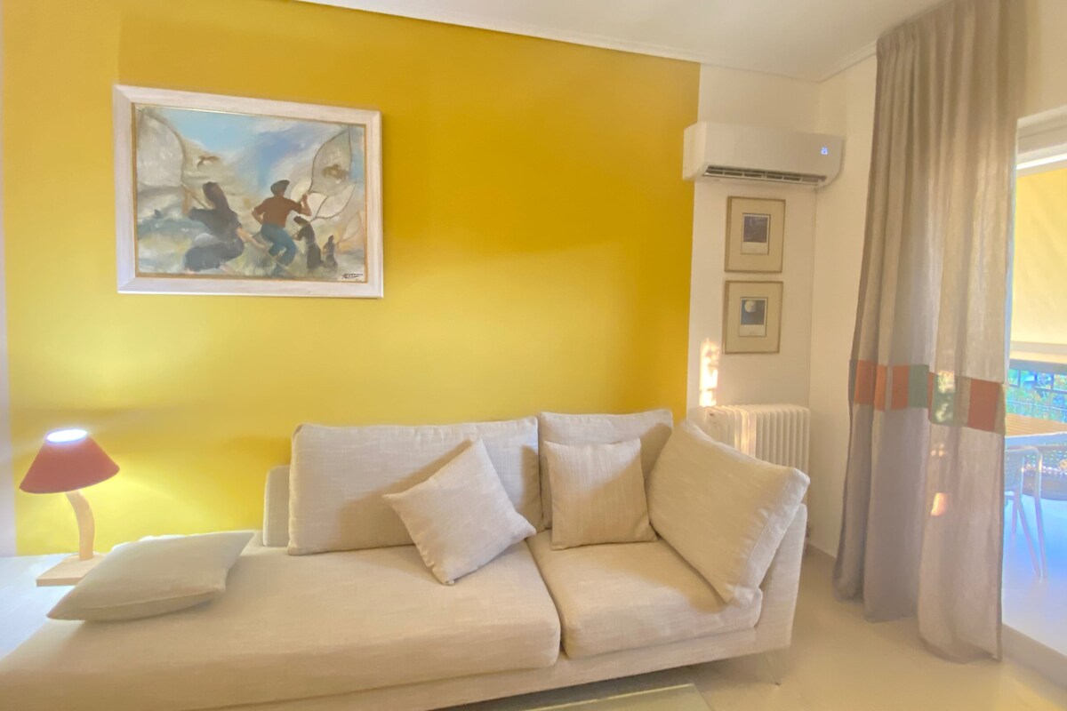 El moderno apartamento ático de 60 m2, renovado y ubicado en el quinto piso, se encuentra a solo 4 minutos a pie de la estación de metro Panormou, en la línea del aeropuerto, ¡un «campamento base» tranquilo ideal para explorar Atenas! Cuidadosamente diseñado y decorado por mí como arquitecto, el apartamento está totalmente equipado con todo lo que uno desea, dos televisores inteligentes (en el dormitorio y la sala de estar) y una bonita chimenea. Dos enormes balcones con plantas a ambos lados con impresionantes vistas panorámicas a la ciudad y a la montaña de Ymitos. ¡Disfruta!